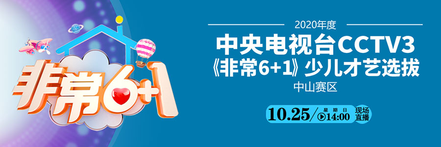 2020年度中央電視臺CCTV3《非常6+1》少兒才藝選拔中山賽區(qū)開賽,10月25日下午2點(diǎn),中山日報全程直播,敬請關(guān)注