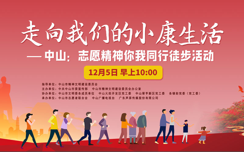 12月5日是第35個國際志愿者日,我市目前正舉辦“走向我們的小康生活”——中山市志愿服務周系列活動。11月30日至12月6日期間志愿周期間,全市各鎮(zhèn)街將陸續(xù)開展志愿宣講活動、致敬志愿者亮燈、志愿者隊伍方陣徒步活動、青少年助力垃圾分類志愿服務等活動。