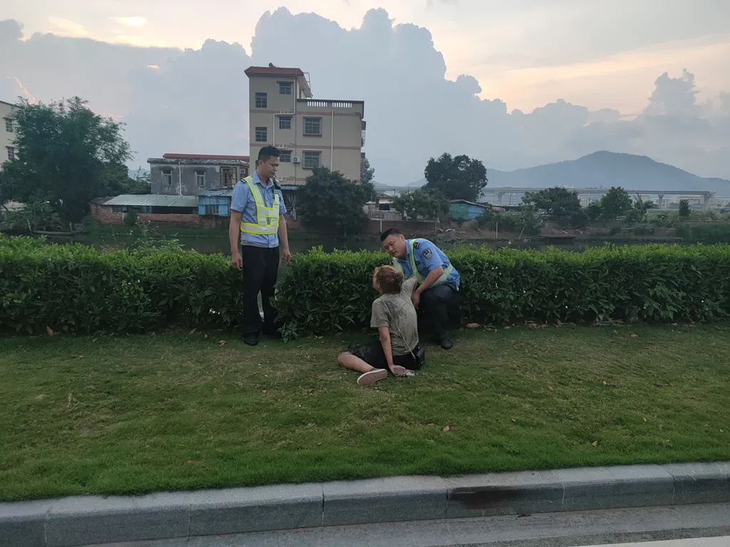 “河邊有個人好像想不開要輕生你們快去看看......”5月14號5點(diǎn)27分,雅居樂警務(wù)室接到群眾反映說在雅居樂萬象郡泊岸公交充電站附近有一名女子疑似輕生。接報后安管員趙偉和陳東馬上趕往事發(fā)地。