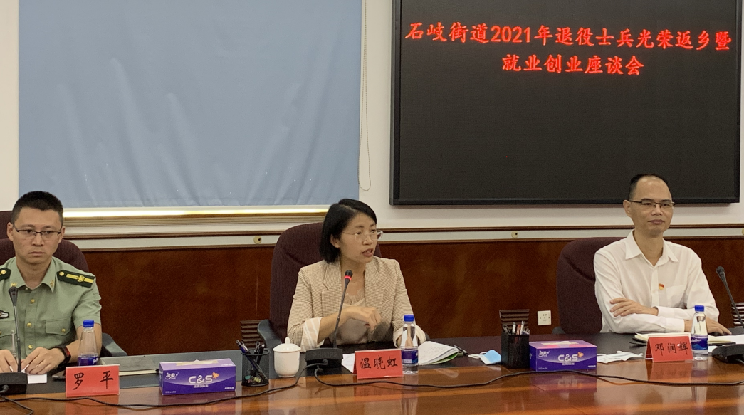 9月24日下午,石岐街道辦事處舉辦“2021年退役士兵光榮返鄉(xiāng)暨就業(yè)創(chuàng)業(yè)座談會(huì)”,歡迎今年光榮返鄉(xiāng)的士兵。街道辦事處副主任溫曉虹,公共服務(wù)辦、武裝部、退役軍人服務(wù)中心負(fù)責(zé)人以及今年秋季退役士兵一同參加了座談會(huì)。