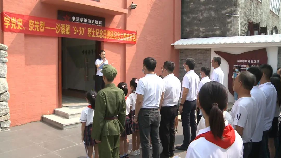 紅色宣講員、沙溪鎮(zhèn)退役軍人紅旗志愿服務(wù)隊(duì)隊(duì)員、申明亭小組工作人員楊健永介紹申明亭烈士生平事跡。