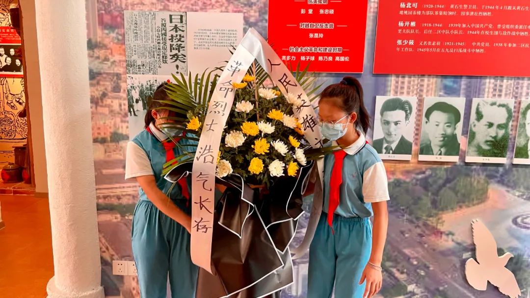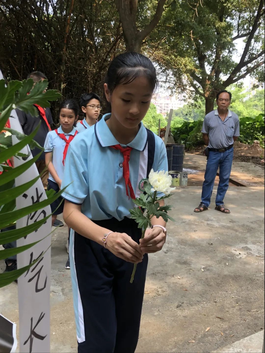 少先隊(duì)員代表、中心小學(xué)學(xué)生黃可馨為烈士們獻(xiàn)詞:作為未來祖國接班人,身上流淌著的是先輩們的紅色基因,傳承的是紅色的革命的理想,應(yīng)該養(yǎng)成文明進(jìn)取的習(xí)慣,學(xué)習(xí)好各門文化知識,掌握好各種科學(xué)技術(shù),完善自己的思想,凈化自己的心靈。維護(hù)民族尊嚴(yán)和國家榮譽(yù),將國家的明天建設(shè)得更加美好!