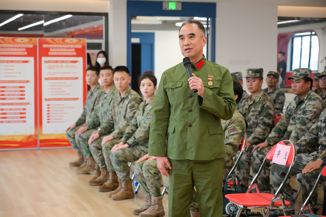 羅宇:爭做新時代最可愛的人 “新時代最可愛的人,就是任何時候、任何情況下都要堅決聽黨話、永遠(yuǎn)跟黨走。”英模單位代表羅宇說。 羅宇動情地講述—— 陳紅軍烈士在書中標(biāo)注:“黨把自己放在什么崗位上,就要在什么崗位上建功立業(yè)?!?/p> 陳祥榕烈士寫下戰(zhàn)斗口號:“清澈的愛,只為中國。” 肖思遠(yuǎn)烈士在戰(zhàn)地日記中寫道:“我們就是祖國的界碑,腳下的每一寸土地,都是祖國的領(lǐng)土。” 還有許多戰(zhàn)斗在一線的勇士…… 在他們身上,我們看到強烈的愛國心、報國情。 郭開強分享軍旅故事。記者 易承樂 攝