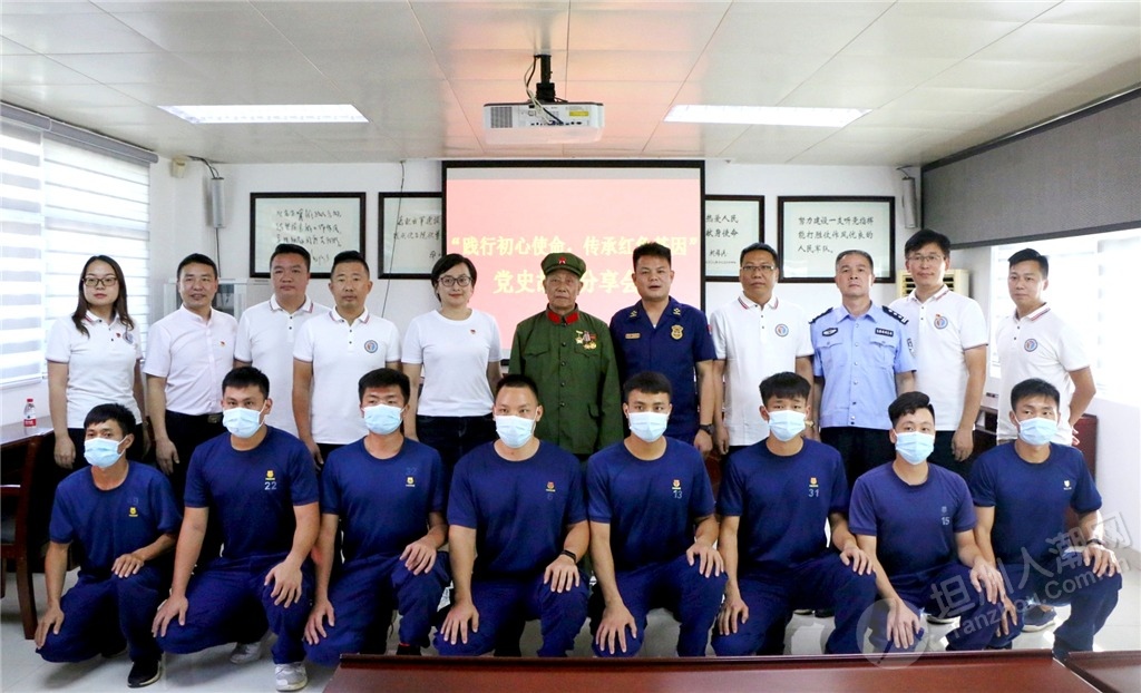 感人至深的英雄事跡,使與會黨員干部沉浸其中,深刻感受到了每一枚紅色勛章所承載的歷史記憶。中隊消防員、坦洲鎮(zhèn)民兵海防巡邏排排長黃俊謙說:“聆聽了鄭叔生動的紅色故事,我備受鼓舞,作為一名基層消防員和民兵骨干,在今后的工作中我要發(fā)揚革命前輩的優(yōu)良傳統(tǒng),爭做時代新人,為坦洲消防救援事業(yè)和海防應(yīng)急搶險工作貢獻自己的青春和熱血!” ▲與會人員和參戰(zhàn)老兵鄭金洪合影留念