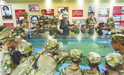 ▲教官向孩子們講解中山軍事歷史。 記者 余兆宇 攝