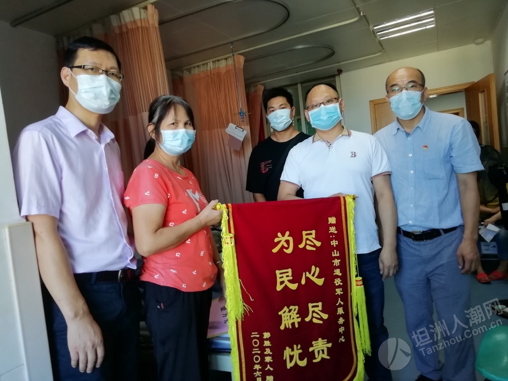 近日,中山市首個應(yīng)急救助資金申請已通過省退役軍人事務(wù)廳審核,坦洲籍退役軍人郭叔獲得了應(yīng)急救助資金1萬元。該筆應(yīng)急救助資金于日前由省退役軍人事務(wù)廳按照規(guī)定程序撥付到申請人個人賬戶。 6月18日,中山市、坦洲鎮(zhèn)兩級退役軍人服務(wù)中心及坦洲社會事務(wù)局相關(guān)負責人一行到坦洲醫(yī)院對郭叔進行慰問,告知他申請的應(yīng)急救助資金已由省退役軍人事務(wù)廳撥付到賬,叮囑他要聽從醫(yī)生的囑咐,積極配合康復(fù)治療,樹立起戰(zhàn)勝疾病的勇氣和信心。郭叔家人特地制作了一面錦旗送到中山市退役軍人服務(wù)中心主任張波手中,由衷表達了對市、鎮(zhèn)、村各級退役軍人服務(wù)中心(站)的感激之情。