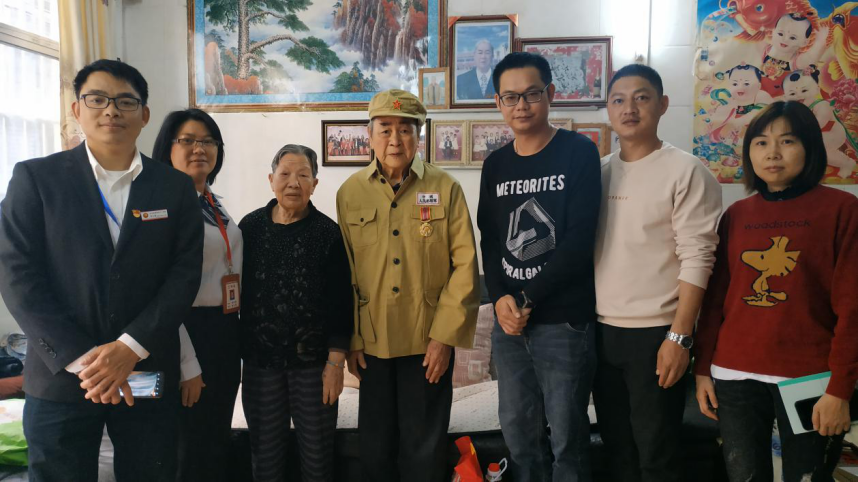 新春佳節(jié)的腳步漸近,歡樂喜慶的氣氛漸濃,為了讓更多人感受到溫暖和祝福港口鎮(zhèn)持續(xù)開展慰問活動(dòng)走訪退役軍人。 近日,市退役軍人服務(wù)中心聯(lián)合鎮(zhèn)退役軍人服務(wù)中心開展退役軍人慰問活動(dòng),為他們送去黨和政府的溫暖關(guān)懷及節(jié)日問候! 李生(右4),88歲,1951年至1953年期間參加抗美援朝,1957年從朝鮮返回復(fù)員,是港口鎮(zhèn)唯一健在的抗美援朝老戰(zhàn)士。 梁細(xì)根(右4),63歲,參加過對越自衛(wèi)反擊戰(zhàn),曾在戰(zhàn)時(shí)立三等功。 在退役士兵吳干榮(左2)家中,慰問組向他講解危房改造的政策,鼓勵(lì)他積極面對生活困難,堅(jiān)定信心,振奮精神。 梁澤祥(右2)是參戰(zhàn)退役軍人,慰問組轉(zhuǎn)達(dá)了市退役軍人事務(wù)局、市工商聯(lián)和石岐青協(xié)對他的問候。