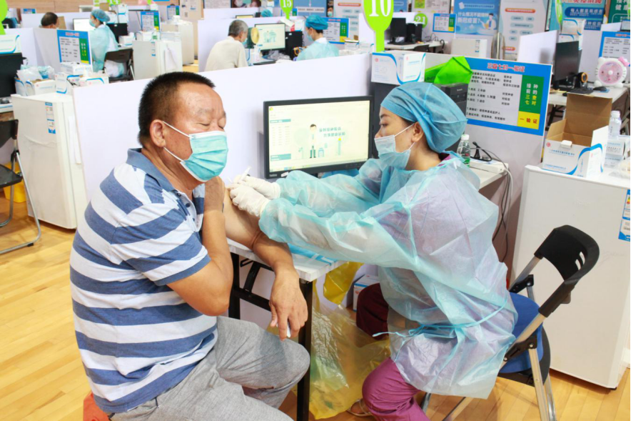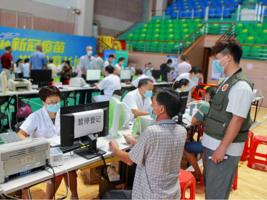 東鳳鎮(zhèn)臨時接種點現(xiàn)日均接種500劑次,在臨時接種點現(xiàn)場,等待接種的重點優(yōu)撫對象佩戴好口罩,在工作人員和退役軍人志愿者的指引下有序進入接種點。 志愿者們依次指引重點優(yōu)撫對象們去到咨詢登記區(qū)、量血壓區(qū)、接種區(qū)和留觀區(qū),逐個完成新冠疫苗接種。