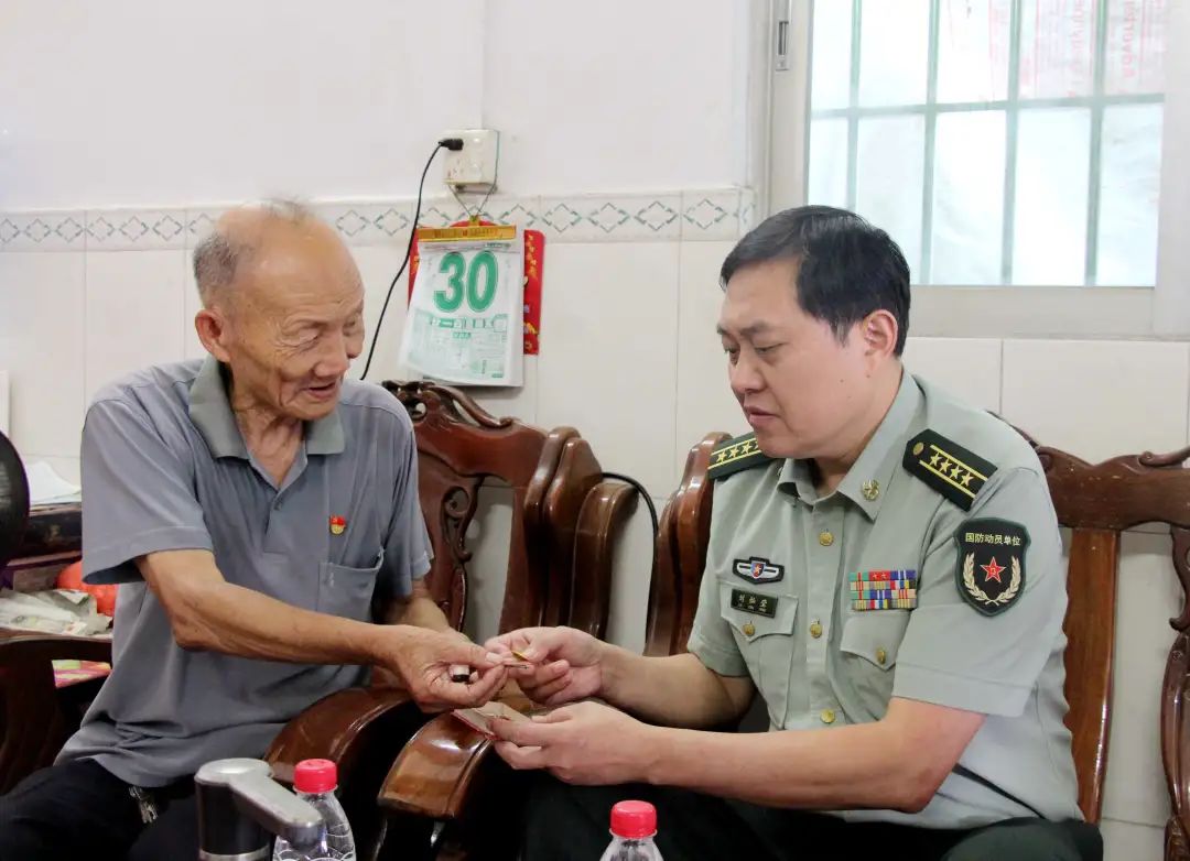 在“八一”建軍節(jié)即將到來之際,7月30日上午,市委常委、中山軍分區(qū)政委劉燦瑩來到橫欄鎮(zhèn),走訪慰問部分退役軍人,為他們送去黨和政府的親切關(guān)懷,祝福他們建軍節(jié)快樂、身體健康、家庭幸福。鎮(zhèn)領(lǐng)導(dǎo)林培華、葉劍榮、高桂冰等陪同慰問。 周七友,今年80歲,是橫欄鎮(zhèn)橫東村一名有著54年黨齡的退伍老兵。1959年,18歲的周七友參軍入伍,成為一名軍人。1968年,周七友光榮退伍。 1959年到1968年,周七友獲得了許多獎(jiǎng)項(xiàng)與勛章,這些勛章他都悉心保存,非常有意義和價(jià)值。 “這幾枚是'五好戰(zhàn)士'稱號(hào)徽章。當(dāng)年戰(zhàn)士們積極響應(yīng)黨中央號(hào)召,爭當(dāng)'五好戰(zhàn)士'。'五好'是指:政治思想好,三八作風(fēng)好,軍事技術(shù)好,完成任務(wù)好,鍛煉身體好”,多年過去了,周七友還清楚記得“五好”的具體內(nèi)容。“還有這一枚是‘技術(shù)能手’稱號(hào)徽章,當(dāng)時(shí)我能夠熟練地拆裝一整部車,所以就獲得了這枚‘技術(shù)能手’稱號(hào)徽章。這枚徽章我們一個(gè)班只有我獲得了?!?/p>