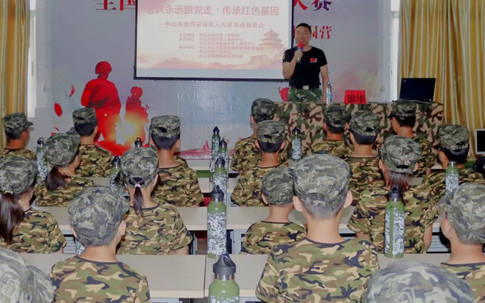老兵鄭容添表示,老兵宣講團(tuán)是一個(gè)學(xué)習(xí)的平臺(tái),加入宣講團(tuán)對(duì)個(gè)人來說是一種義務(wù)與責(zé)任,成員們將不忘初心,牢記使命,為坦洲的國(guó)防和青少年成長(zhǎng)教育盡一點(diǎn)微薄之力,為坦洲和美發(fā)展講好優(yōu)良傳統(tǒng)和革命故事,激勵(lì)青少年健康成長(zhǎng)。 “老兵宣講團(tuán)”各成員在現(xiàn)場(chǎng)分享退役后工作和創(chuàng)業(yè)經(jīng)歷,介紹了開展各類志愿活動(dòng)的故事。老兵們的好經(jīng)驗(yàn)、好做法讓大家很受啟發(fā)。 坦洲鎮(zhèn)公共服務(wù)辦公室負(fù)責(zé)人表示,退役軍人為國(guó)防和軍隊(duì)建設(shè)作出了重要貢獻(xiàn),是社會(huì)主義現(xiàn)代化建設(shè)的重要力量,是黨和國(guó)家的寶貴財(cái)富。組建“老兵宣講團(tuán)”開展紅色宣講活動(dòng)意義重大,要結(jié)合在“八一”“國(guó)慶”“黨的二十大”等重要時(shí)間節(jié)點(diǎn),有計(jì)劃地開展“老兵宣講團(tuán)”進(jìn)學(xué)校、進(jìn)社區(qū)、進(jìn)農(nóng)村、進(jìn)機(jī)關(guān)、進(jìn)企業(yè)等宣講活動(dòng),大力弘揚(yáng)優(yōu)秀退役軍人的先進(jìn)事例,營(yíng)造崇軍優(yōu)屬的良好社會(huì)氛圍,為全鎮(zhèn)經(jīng)濟(jì)社會(huì)發(fā)展凝聚強(qiáng)大力量。 當(dāng)天下午,“老兵宣講團(tuán)”成員梁華來到坦洲鎮(zhèn)雛鷹國(guó)防教育研學(xué)基地,為開展夏令營(yíng)軍訓(xùn)的60余名學(xué)生上了一堂生動(dòng)的愛國(guó)主義教育課。梁華結(jié)合自身16年的軍旅生涯向?qū)W生們普及國(guó)防教育知識(shí),講述強(qiáng)軍興軍歷史及中國(guó)軍人的職責(zé)和使命,讓孩子們近距離感受軍人氣質(zhì)和榮耀,增強(qiáng)他們強(qiáng)國(guó)強(qiáng)軍、保家衛(wèi)國(guó)的責(zé)任感和使命感。  ▲“老兵宣講團(tuán)”成員梁華給學(xué)生上國(guó)防教育課。