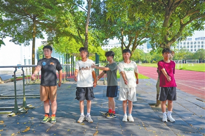 鐘鑫引導(dǎo)同期參軍的另外4名大學(xué)畢業(yè)生進(jìn)行體能訓(xùn)練。記者 易承樂(lè) 攝