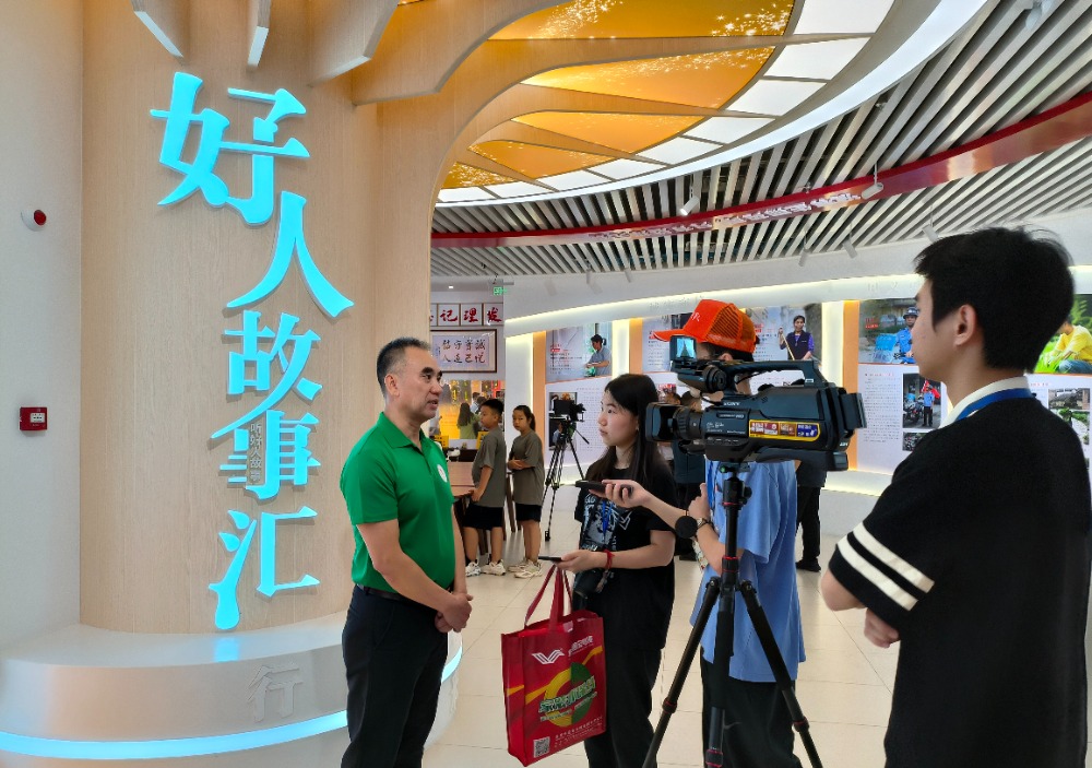 本次調(diào)研中,來自中央、省、市約20家媒體的記者,先后走訪東鳳鎮(zhèn)退役軍人服務(wù)中心、中山好人館等地。通訊員供圖 16日上午,媒體采風(fēng)團(tuán)來到了中山好人館,退役軍人代表李克和孫宏寧帶領(lǐng)采風(fēng)團(tuán)觀摩好人館,并介紹了退役軍人在志愿服務(wù)上如何為推動全市的社會道德建設(shè)貢獻(xiàn)力量。“中山退役軍人利用志愿服務(wù),宣傳了軍人作風(fēng)優(yōu)良的傳統(tǒng),這種公益形式也是對社會力量的補(bǔ)充,能夠?qū)θ鐣鸬桨駱幼饔??!绷私獾街猩绞胁蹞碥娭驹阜?wù)隊(duì)深入基層開展國防和愛國主義教育、中山市擁軍支前紅旗服務(wù)隊(duì)參與各項(xiàng)日常生活應(yīng)急救援的事跡后,《小康》雜志記者王莉華說,中山市退役軍人深度參與公益所展現(xiàn)出的擔(dān)當(dāng)和作為給她留下深刻印象。中國報道網(wǎng)《前沿資訊》欄目主編陳偉贊發(fā)出感慨,“志愿服務(wù)隊(duì)的工作非常扎實(shí),退役軍人服務(wù)中心在用心用情服務(wù)退伍老兵上也做得很到位?!?/p>  退役軍人代表李克接受采訪。通訊員供圖