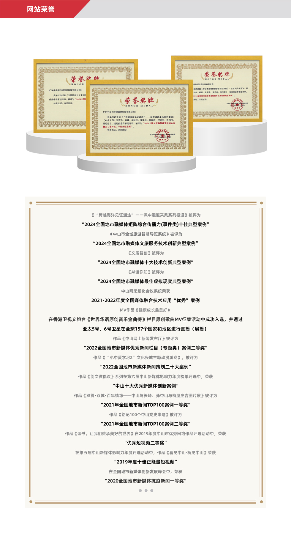 為積極響應(yīng)國(guó)家文化體制改革,2012年中山網(wǎng)信科應(yīng)運(yùn)而生,是中山日?qǐng)?bào)社全資一級(jí)企業(yè)。經(jīng)過(guò)十多年的發(fā)展,中山網(wǎng)信科已成長(zhǎng)為國(guó)家高新技術(shù)企業(yè)、廣東省專精特新中小企業(yè),擁有互聯(lián)網(wǎng)新聞信息服務(wù)許可證、信息網(wǎng)絡(luò)傳播視聽(tīng)節(jié)目許可證、增值電信業(yè)務(wù)經(jīng)營(yíng)許可證等國(guó)家、省、市級(jí)行業(yè)許可,是本地證照最為齊全的新聞機(jī)構(gòu)之一。