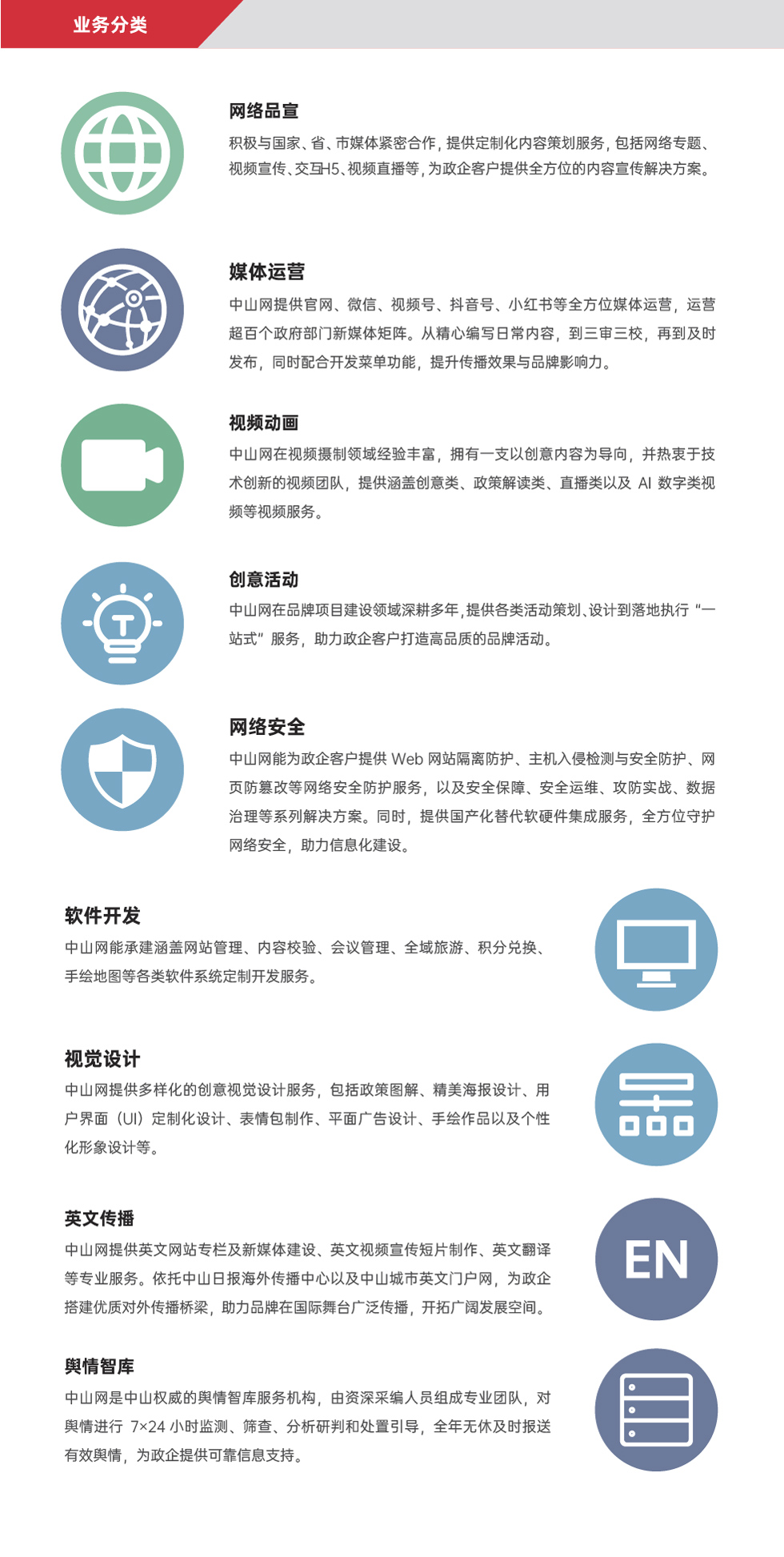 廣東中山網(wǎng)傳媒信息科技有限公司(簡(jiǎn)稱中山網(wǎng)信科)是一家以本地新聞門戶網(wǎng)站——中山網(wǎng)為平臺(tái),以新聞資訊、視頻動(dòng)畫(huà)、媒體運(yùn)營(yíng)、輿情智庫(kù)、網(wǎng)站建設(shè)及運(yùn)維服務(wù)和網(wǎng)絡(luò)安全技術(shù)服務(wù)為主營(yíng)業(yè)務(wù)的互聯(lián)網(wǎng)綜合信息及技術(shù)服務(wù)運(yùn)營(yíng)商。