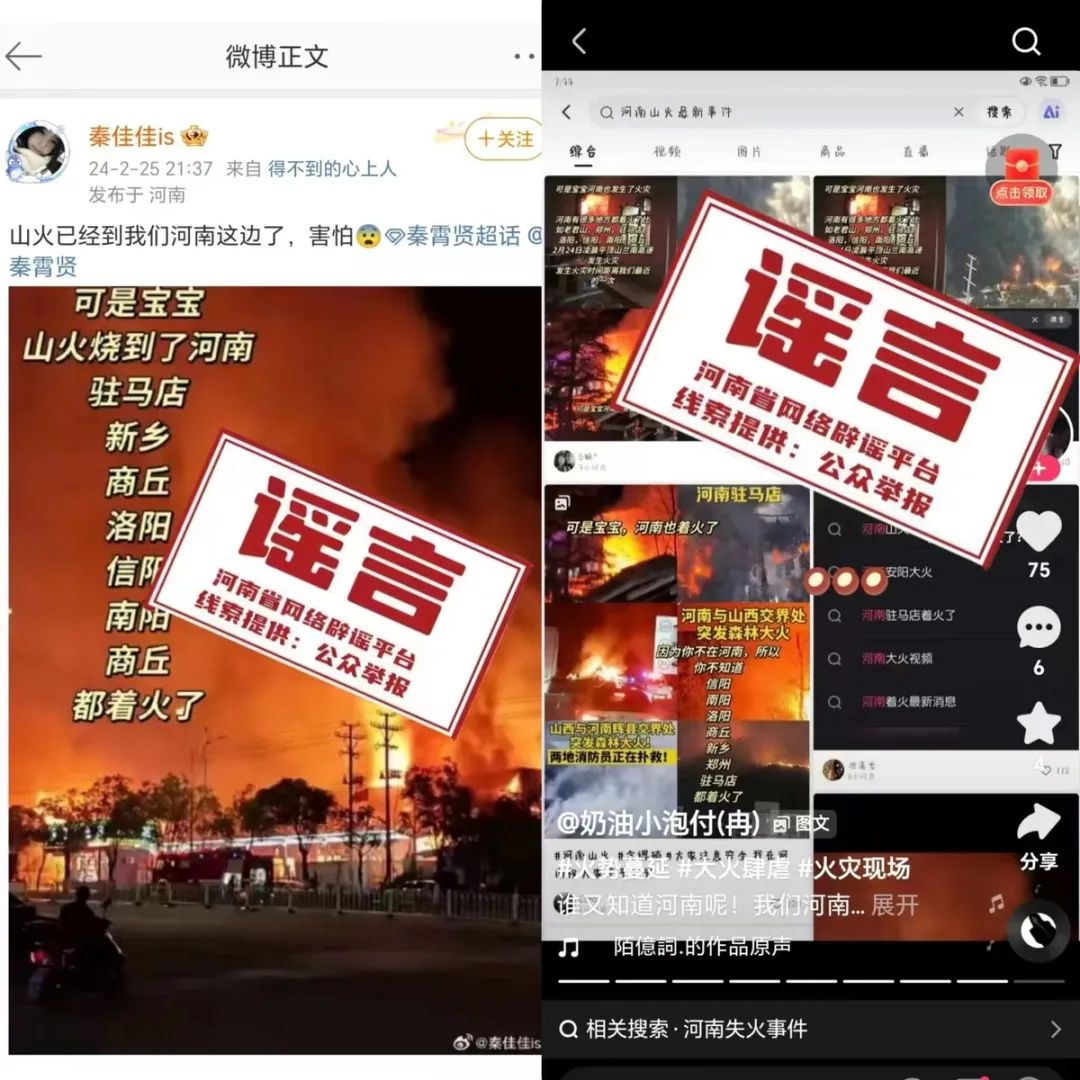 近日,微博用戶@秦佳佳is、視頻平臺(tái)用戶奶油小泡付(冉)等賬號(hào)發(fā)布“山火燒到了河南”信息,并配上多張火災(zāi)圖片。經(jīng)河南省網(wǎng)絡(luò)辟謠平臺(tái)向省林業(yè)局等相關(guān)部門(mén)核查,截至2月26日,河南省域內(nèi)未發(fā)生山火,網(wǎng)傳信息為謠言。請(qǐng)廣大網(wǎng)民不信謠、不傳謠。