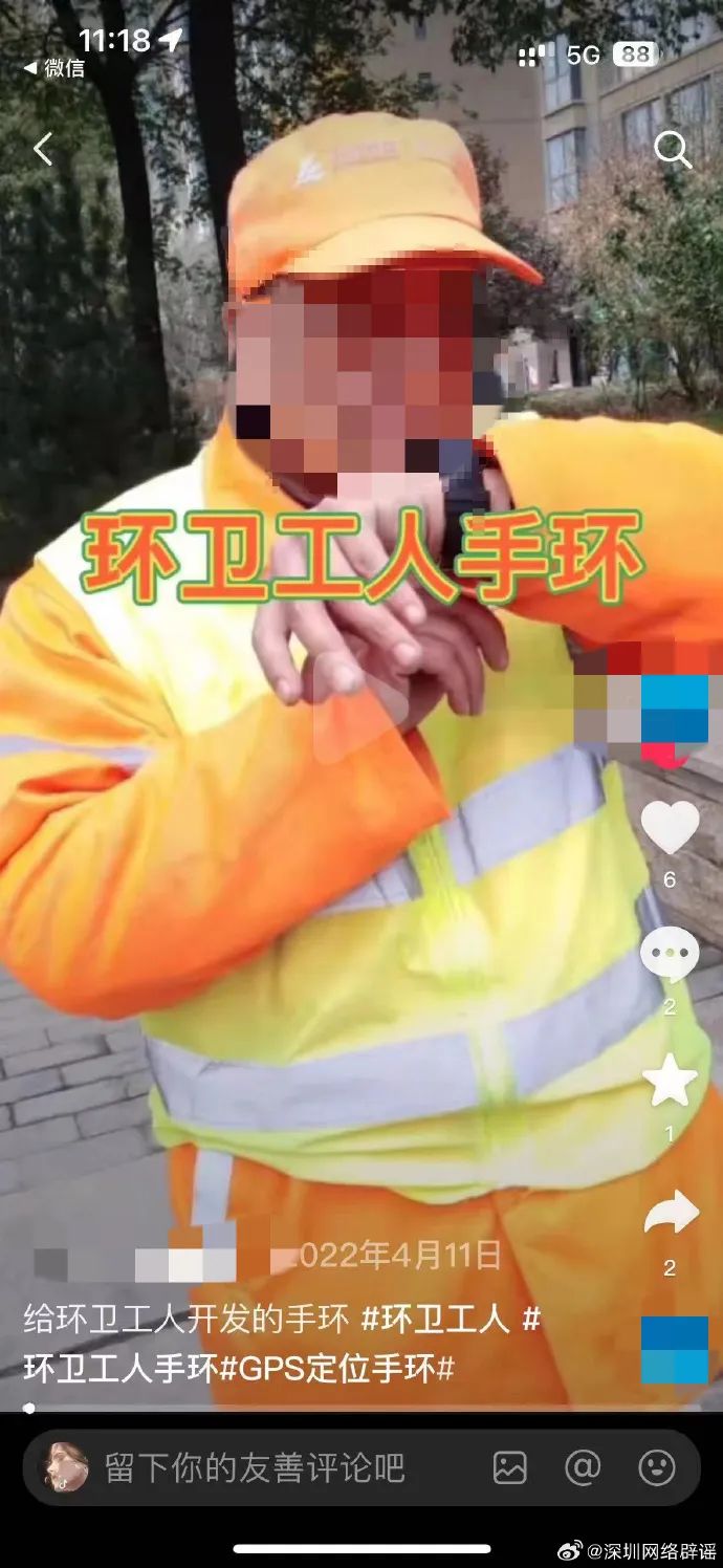 近日,網傳“深圳環(huán)衛(wèi)工人佩戴的定位手環(huán)停留15秒后將自動報警”,記者從深圳市城市管理和綜合執(zhí)法局了解到,該情況不屬實。傳言中圖片是2022年4月11日上傳的定位手環(huán)功能介紹視頻的視頻封面,于近日被添加了“深圳定位停留15秒自動報警”文字并上傳至新媒體平臺傳播,對深圳環(huán)衛(wèi)行業(yè)造成不良社會影響。