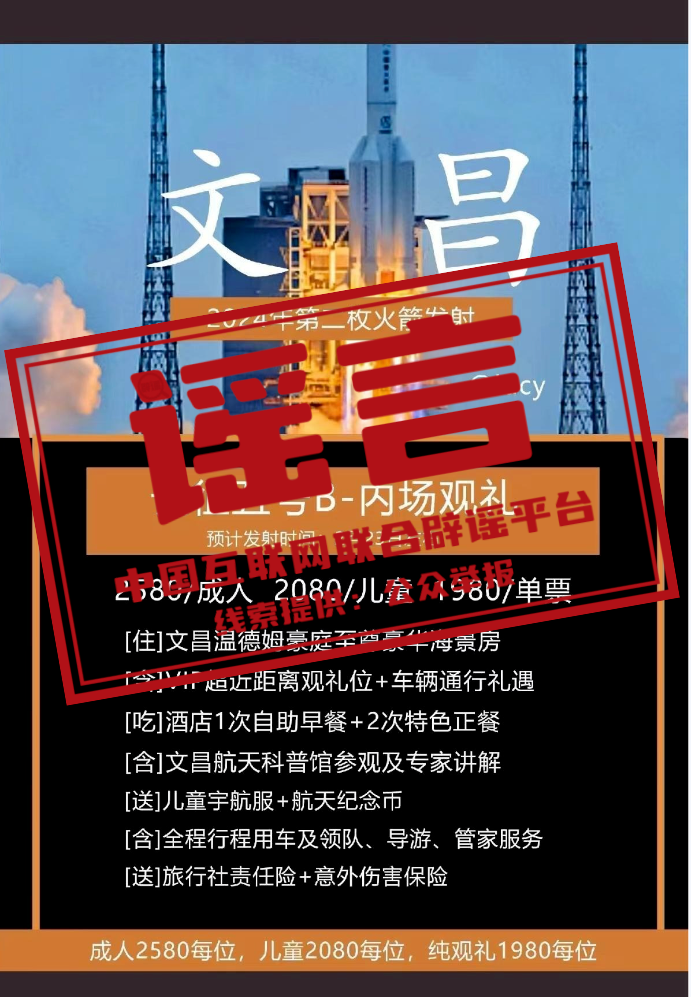 辟 謠 售賣“文昌航天發(fā)射場內場火箭發(fā)射觀禮門票”系虛假宣傳