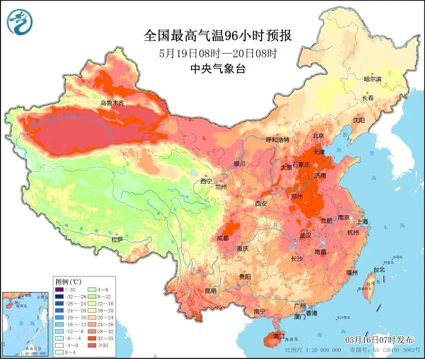 詳情:據(jù)中國天氣網(wǎng)消息,5月17日至19日,南疆盆地、華北平原、黃淮等地的部分地區(qū)將有35℃以上高溫,局地氣溫甚至可超37℃。省會級城市中,西安、鄭州、濟南都有望迎來今年首個高溫天氣,普遍早于常年,其中西安、鄭州將遭遇高溫“兩連擊”,公眾外出還需注意防暑降溫。而南方的暖熱程度遠遠不及北方,由于云量較多,多地還有雨水出沒,氣溫普遍會低于常年同期,江南大部最高氣溫普遍在30℃左右,南北氣溫倒掛。(來源:中央氣象臺、@中國天氣網(wǎng))