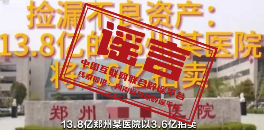謠 言 鄭州某醫(yī)院將以3.6億元被拍賣(mài)?