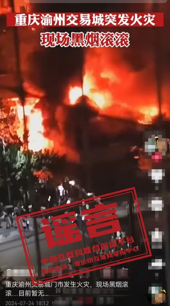 謠 言 重慶渝州交易城突發(fā)火災?