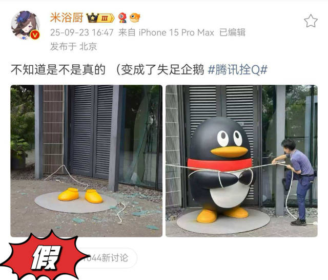 比如騰訊公司門口的企鵝雕塑,公司為了防御臺(tái)風(fēng),將企鵝用繩拴了起來(lái)。而有網(wǎng)民傳播的圖片顯示企鵝只剩雙腳,上身被風(fēng)吹走。騰訊QQ回應(yīng):“鵝拴著呢,穩(wěn)穩(wěn)的。”