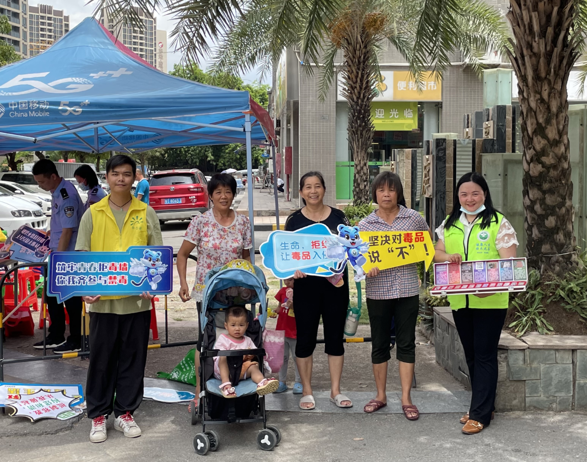 為進(jìn)一步提高阜沙鎮(zhèn)人民群眾抵制毒品的意識(shí)和能力,積極調(diào)動(dòng)廣大群眾參與禁毒的積極性。2021年6月12日下午,阜沙鎮(zhèn)禁毒辦聯(lián)合禁毒社工深入到羅松村阜豐豪庭小區(qū)一帶開(kāi)展以“健康人生,綠色無(wú)毒”為主題的禁毒宣傳活動(dòng)。
