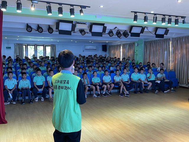 為進一步加強學校禁毒宣傳教育工作,預防和減少青少年涉毒違法犯罪,讓學生從思想上樹立禁毒、識毒、拒毒、防毒、遠離毒品的意識。9月7日,三鄉(xiāng)鎮(zhèn)禁毒辦、三鄉(xiāng)鎮(zhèn)禁毒社工服務中心聯(lián)合鎮(zhèn)文體教育局開展“遠離毒品,呵護未來”為主題的“禁毒第一課”,與學校共筑防毒墻,共建平安校園。